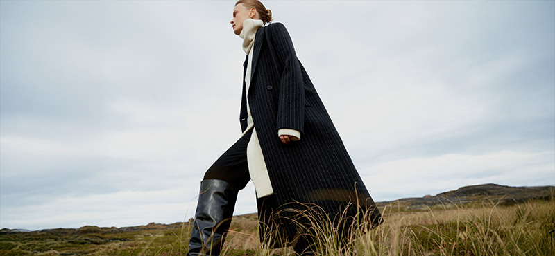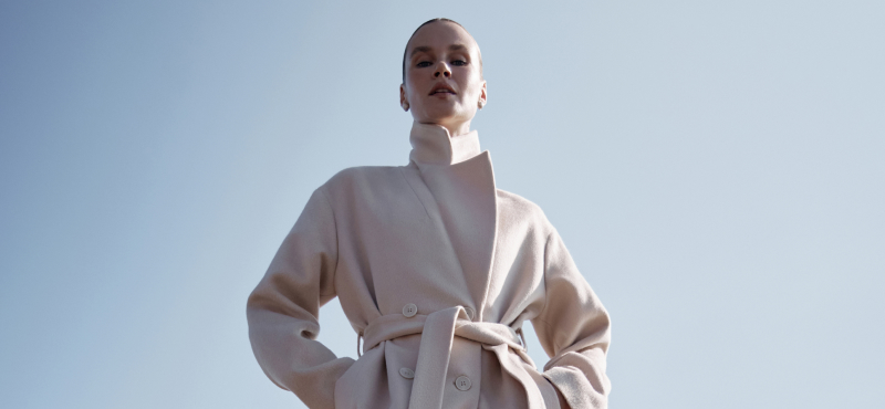 Эта локация стала продолжением идеи коллекции: естественные формы, спокойные тона, внимание к материалам. В центре — верхняя одежда, трикотаж и аксессуары, выстроенные как капсула на каждый день. Шерсть, кашемир, замша и кожа звучат особенно выразительно в сдержанной палитре камня, песка и земли.
